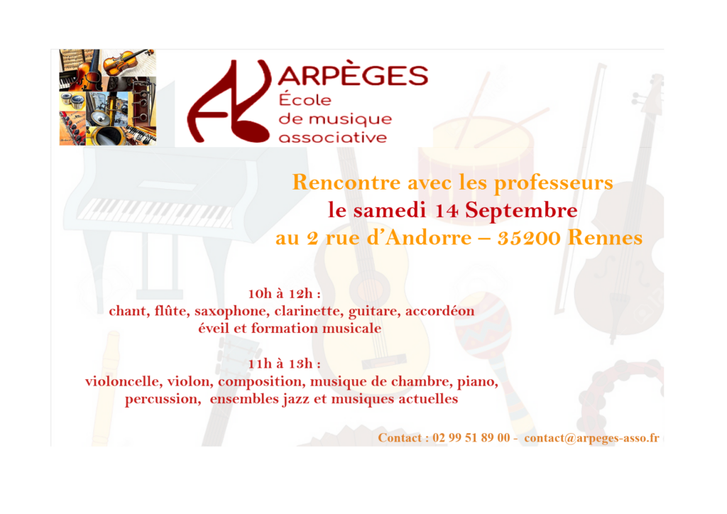 - 10h-12h pour chant, flûte, saxophone, clarinette, guitare, accordéon, éveil et formation musicale,